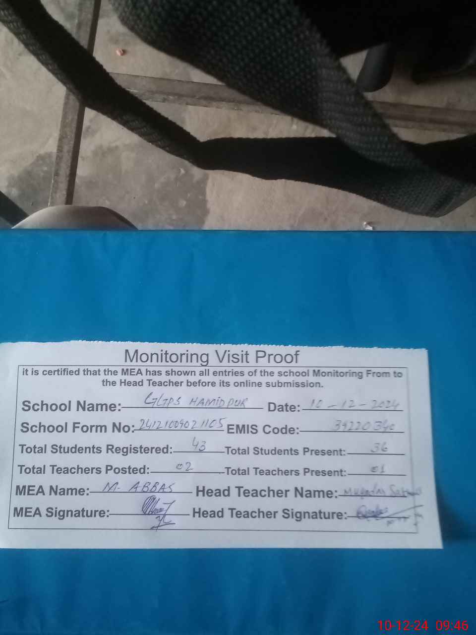 | EMIS Code: 39220340 | Name of School: GGPS HAMID PUR | |||
