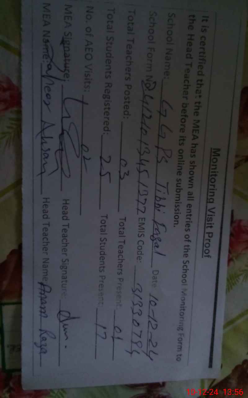 | EMIS Code: 31330794 | Name of School: GGPS TIBBI FAZAL | |||