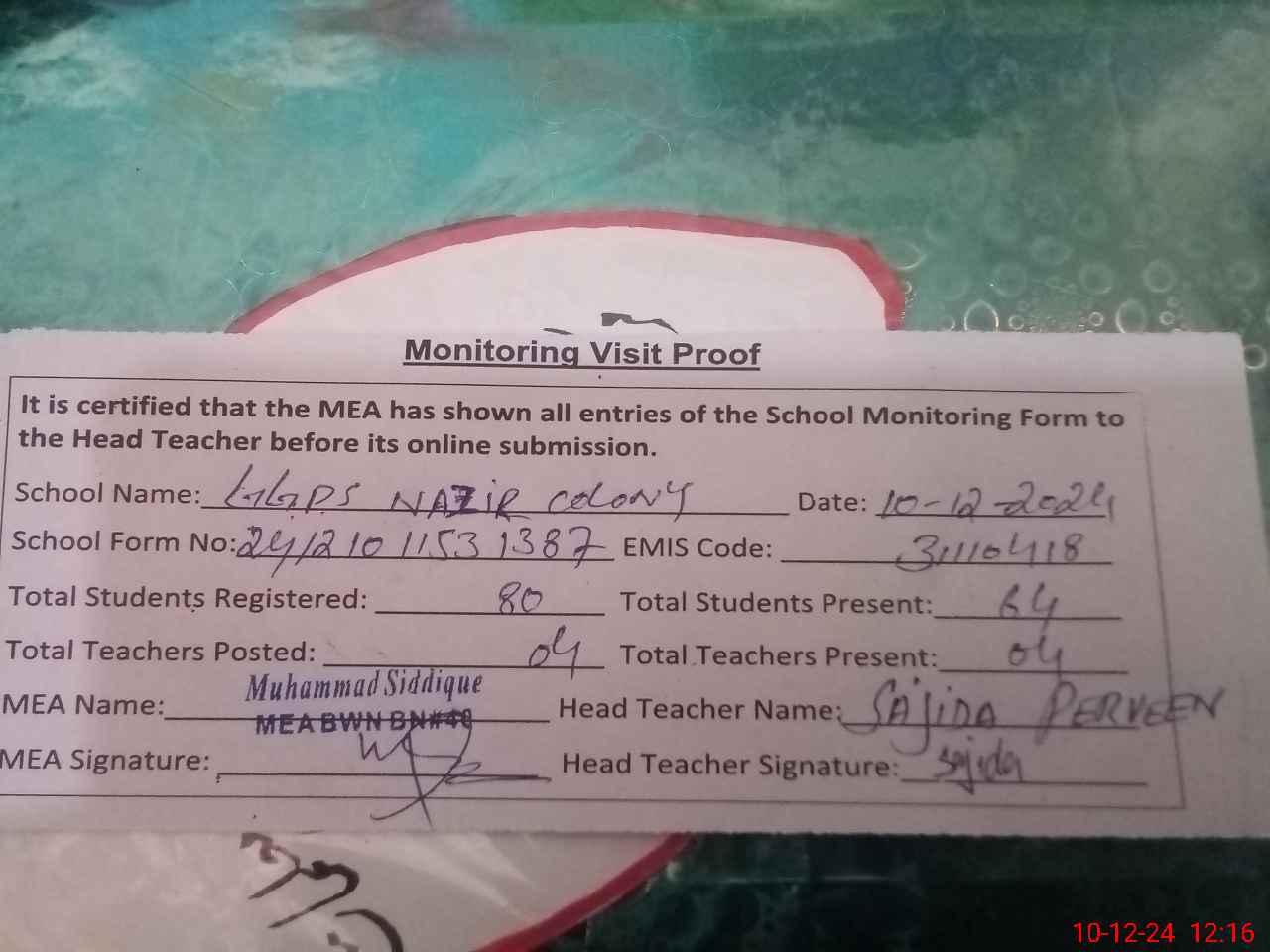 | EMIS Code: 31110418 | Name of School: GGPS NAZIR COLONY | |||