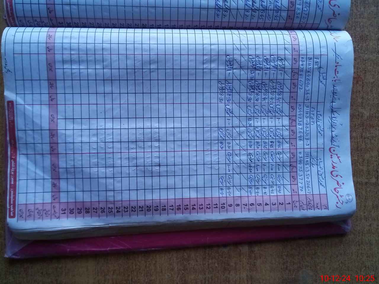 | CNIC | Full Name | Designation | R/C | Absence During Last Calender Month |