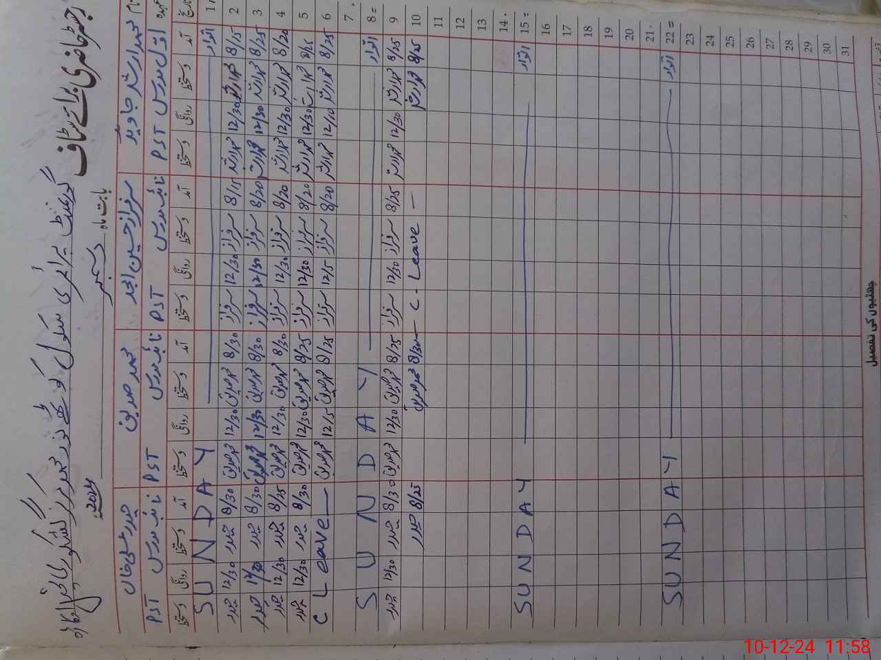 | CNIC | Full Name | Designation | R/C | Absence During Last Calender Month |