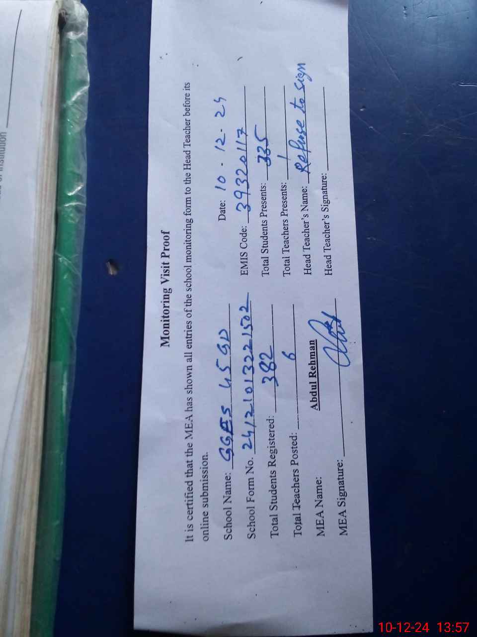 | EMIS Code: 39320117 | Name of School: GGES 45/G.D OKARA | |||