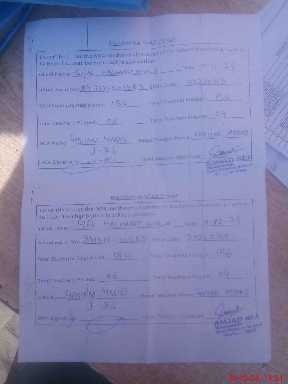 | EMIS Code: 33220303 | Name of School: GPS HASHMAT WALA | |||