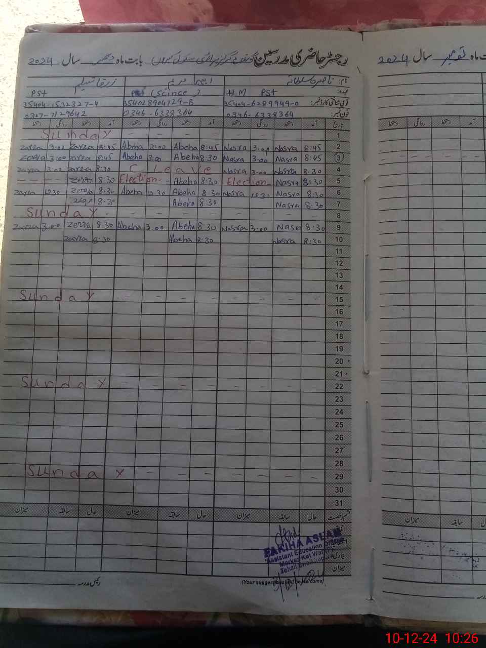 | Name: Na**** Su**** Designation: (School Headmaster's/Headmistress's) PST Phone/Cell Number: 03**** |