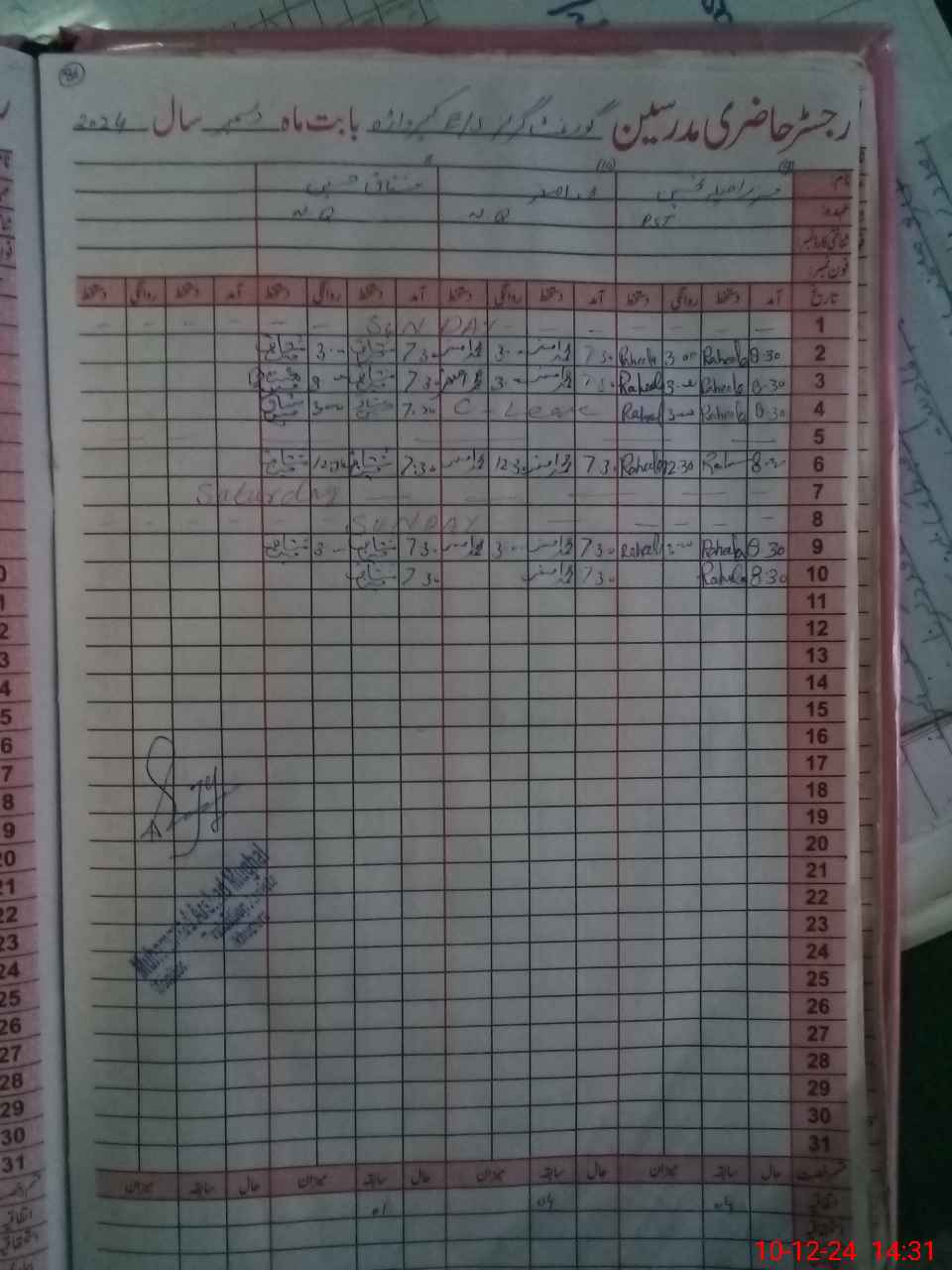 | CNIC | Full Name | Designation | R/C | Absence During Last Calender Month |
