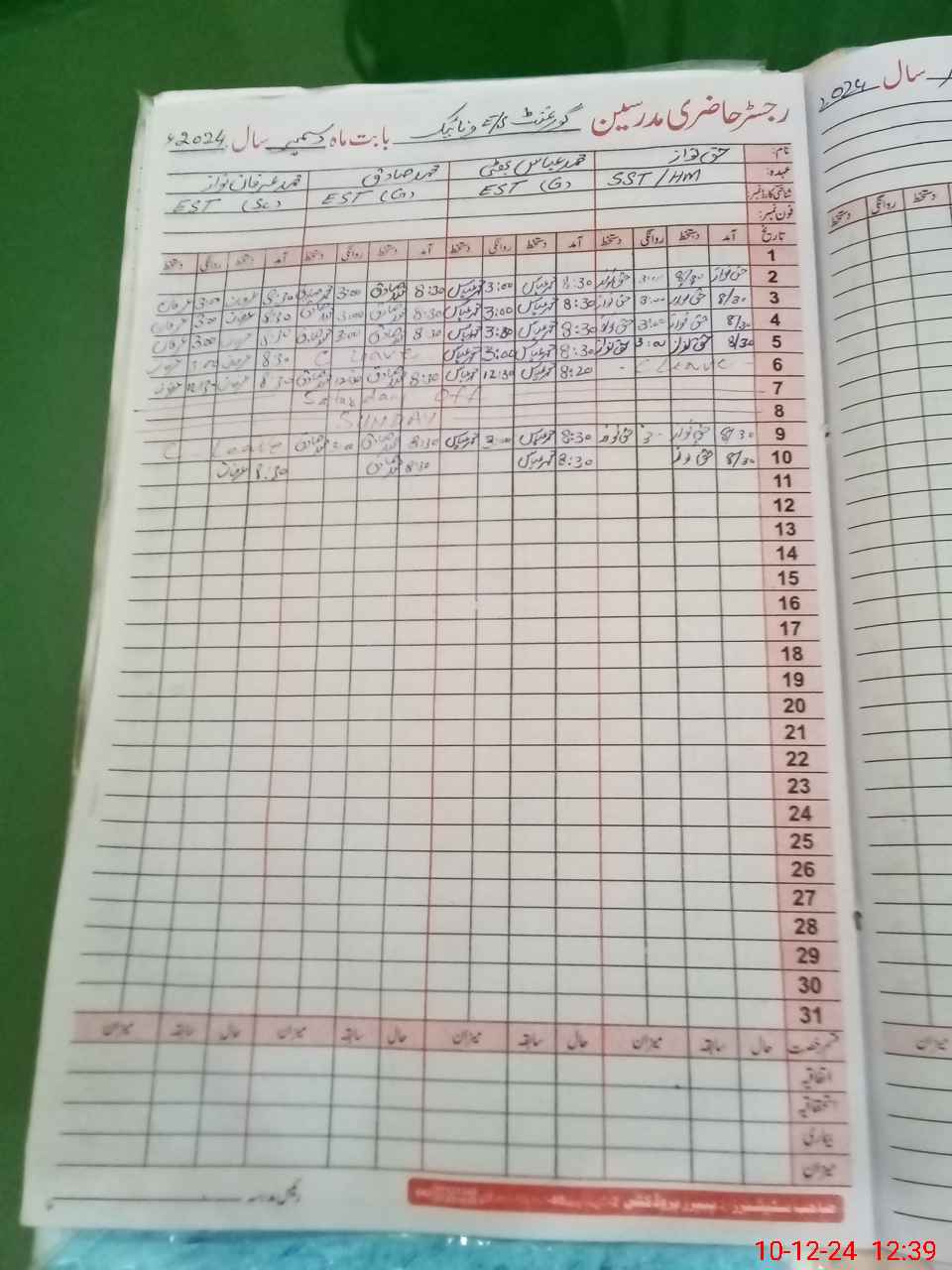 | CNIC | Full Name | Designation | R/C | Absence During Last Calender Month |