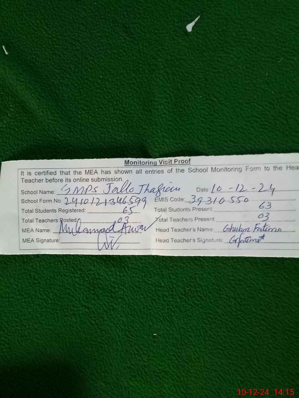 | EMIS Code: 39310550 | Name of School: GMPS JALLU JHUGIAN NO. 1 | |||
