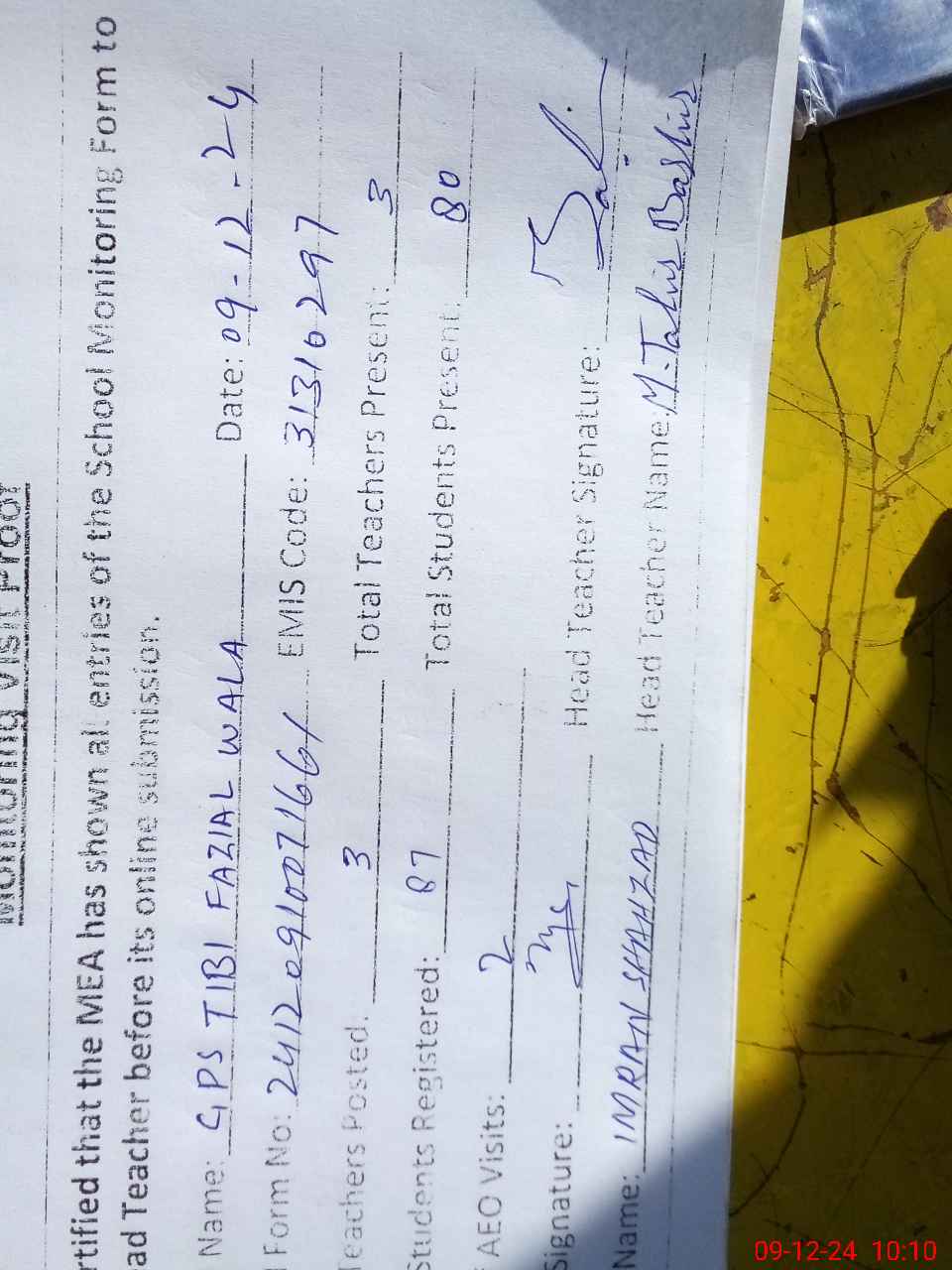 | EMIS Code: 31310297 | Name of School: GPS TIBI FAZIAL WALA | |||