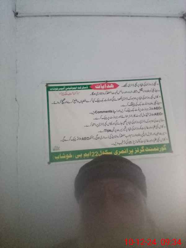 | District: KHUSHAB | Tehsil: QUAIDABAD | Markaz: CHAK NO 22/MB (FEMALE) | Level: Primary | |