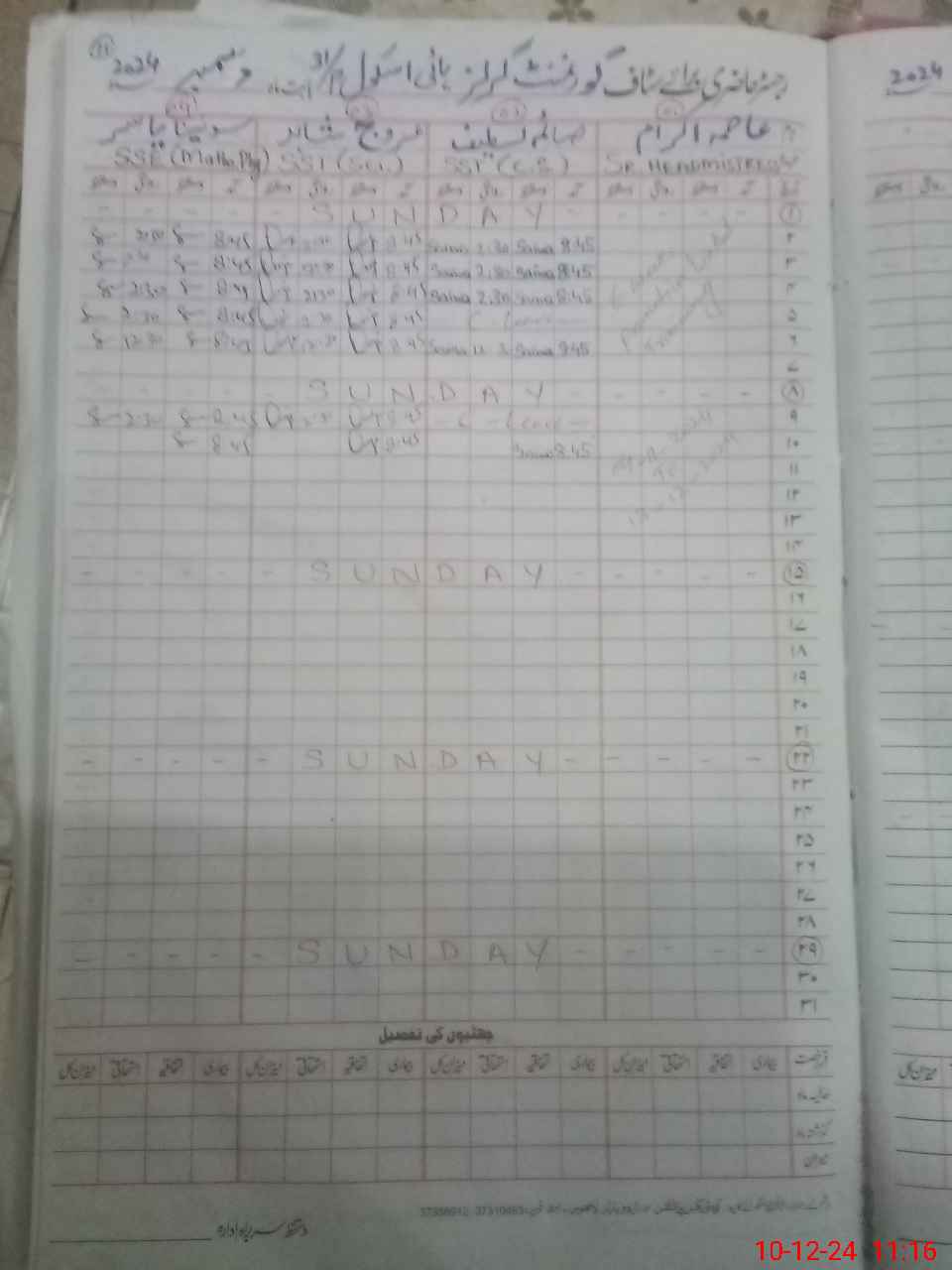 | CNIC | Full Name | Designation | R/C | Absence During Last Calender Month |