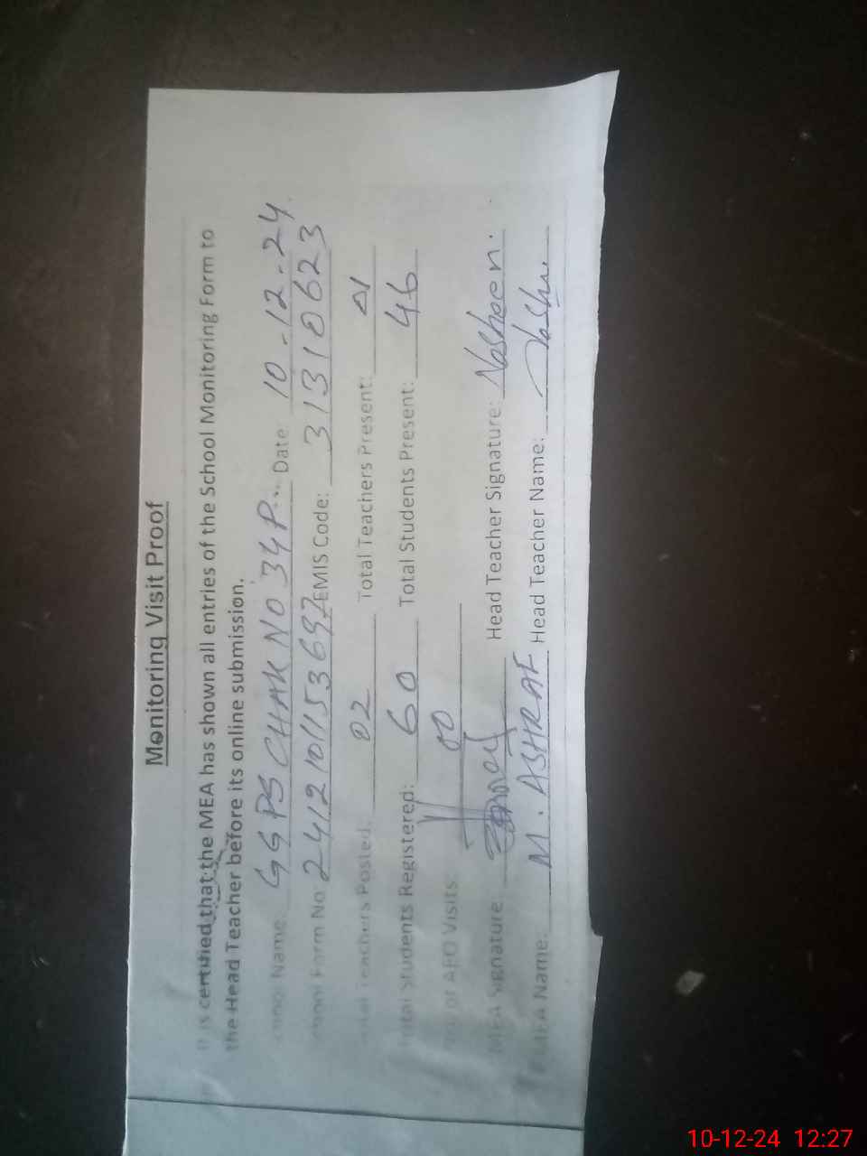 | EMIS Code: 31310623 | Name of School: GGPS CHAK NO.34/P | |||