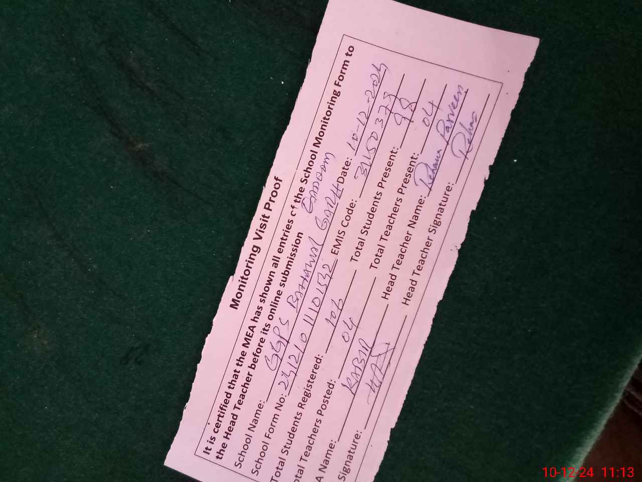 | Certified that this School was Inspected by the Undersigned MEA/DMO Today and the Information Stated Above is as Per Record. | |||||