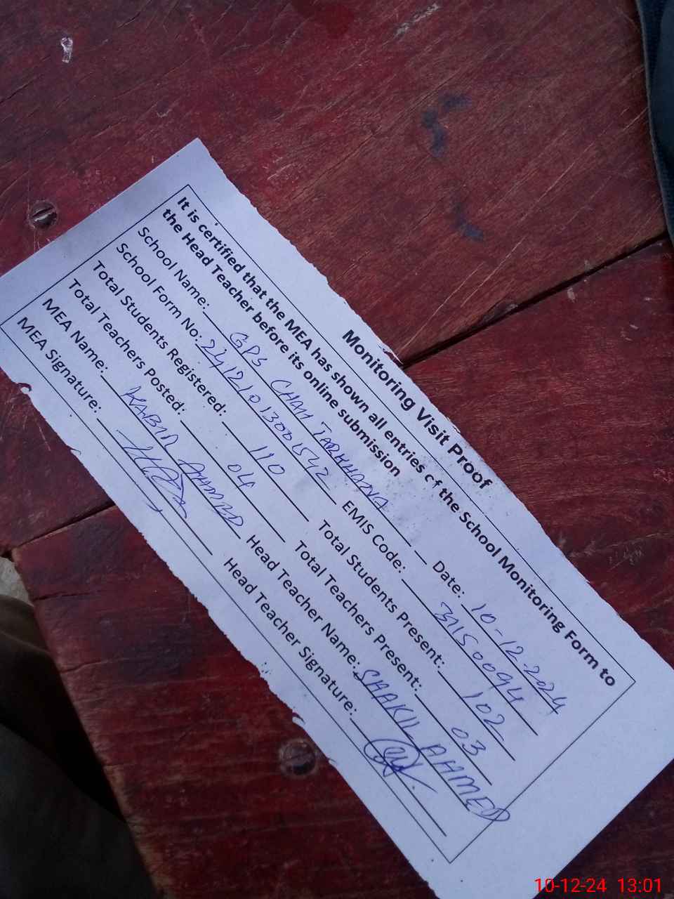 | EMIS Code: 31150094 | Name of School: GPS CHAH TARKHANA WALA | |||