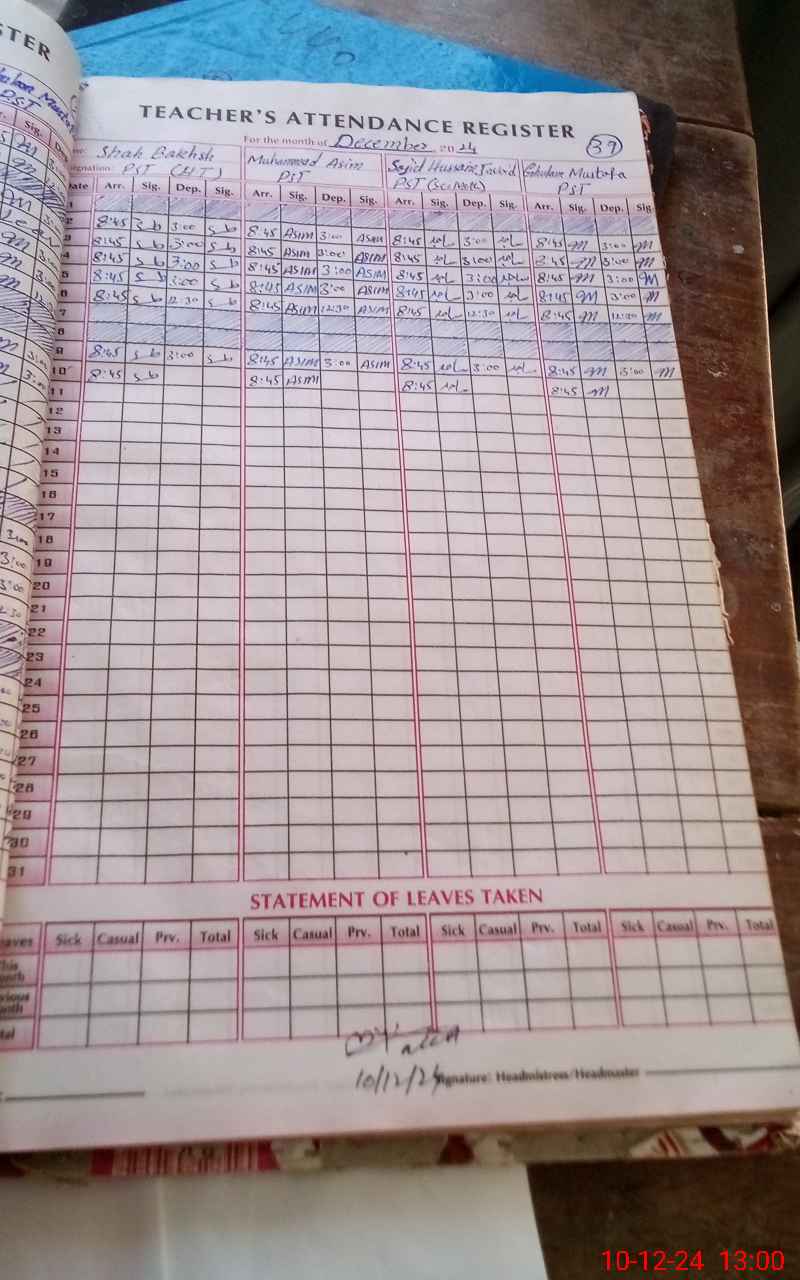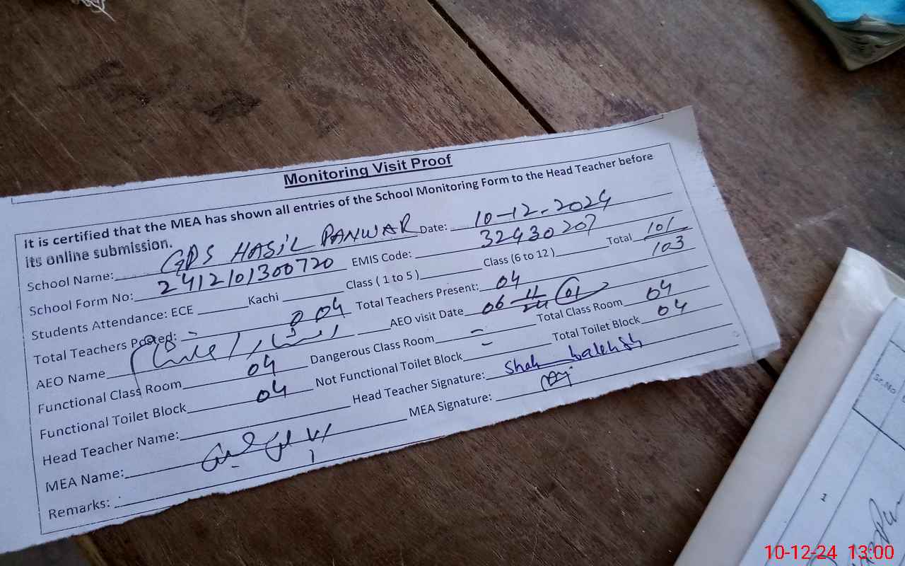 | Attendance Register | Head Teacher | MEA with School | Visit Proof |