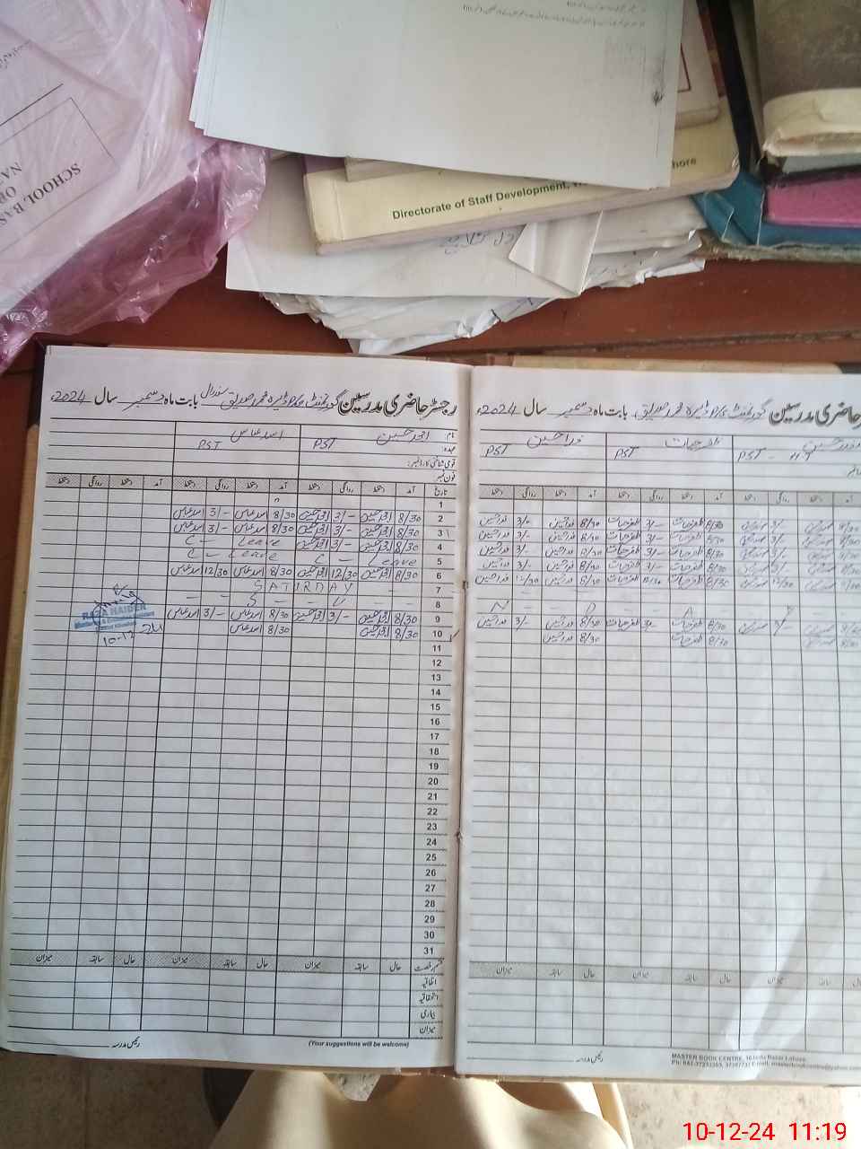 | CNIC | Full Name | Designation | R/C | Absence During Last Calender Month |