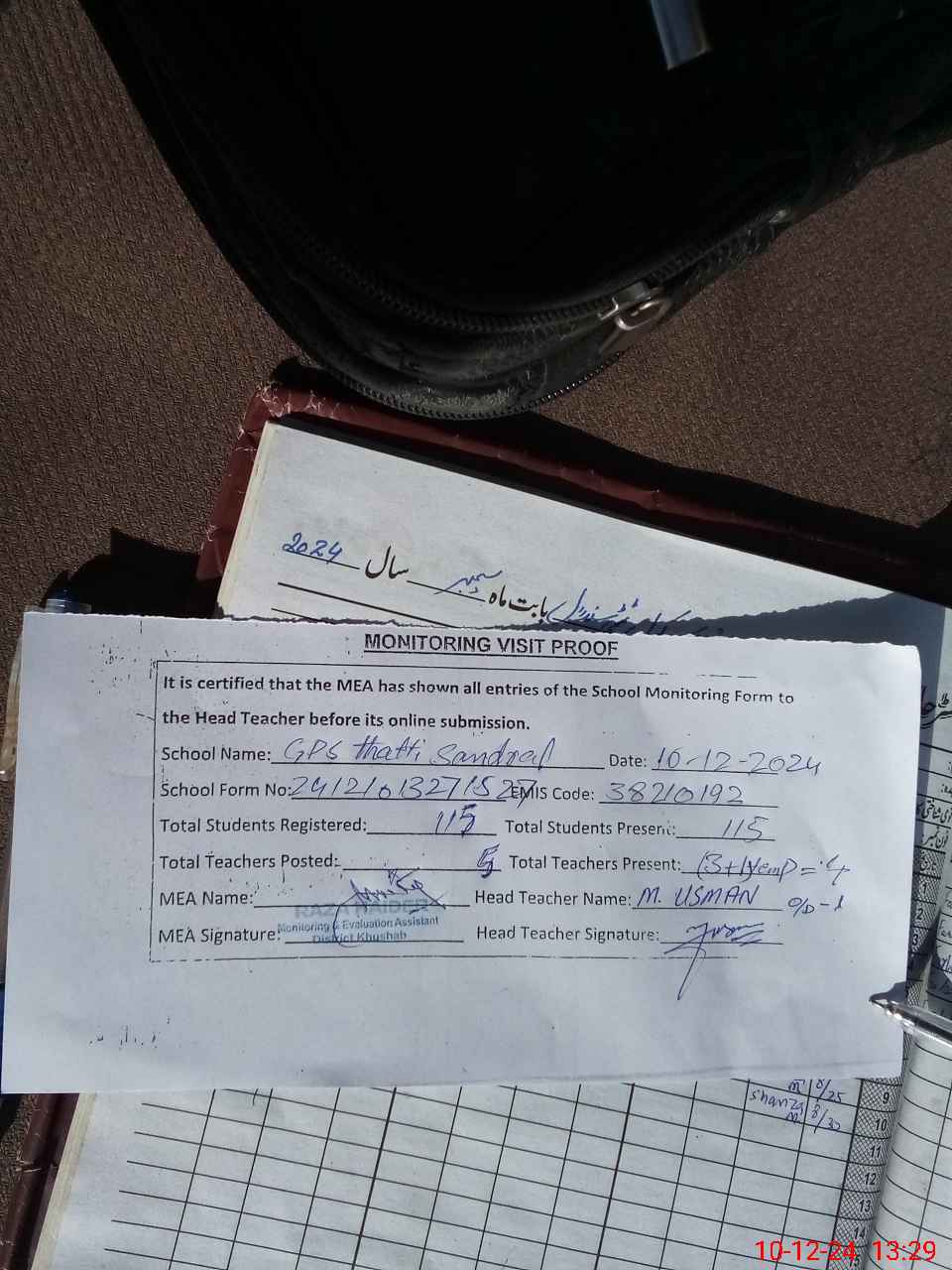 | Attendance Register | Head Teacher | MEA with School | Visit Proof |