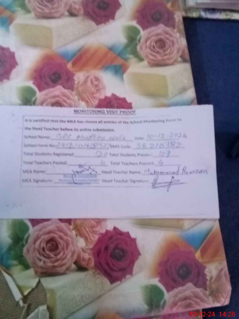 | Attendance Register | Head Teacher | MEA with School | Visit Proof |