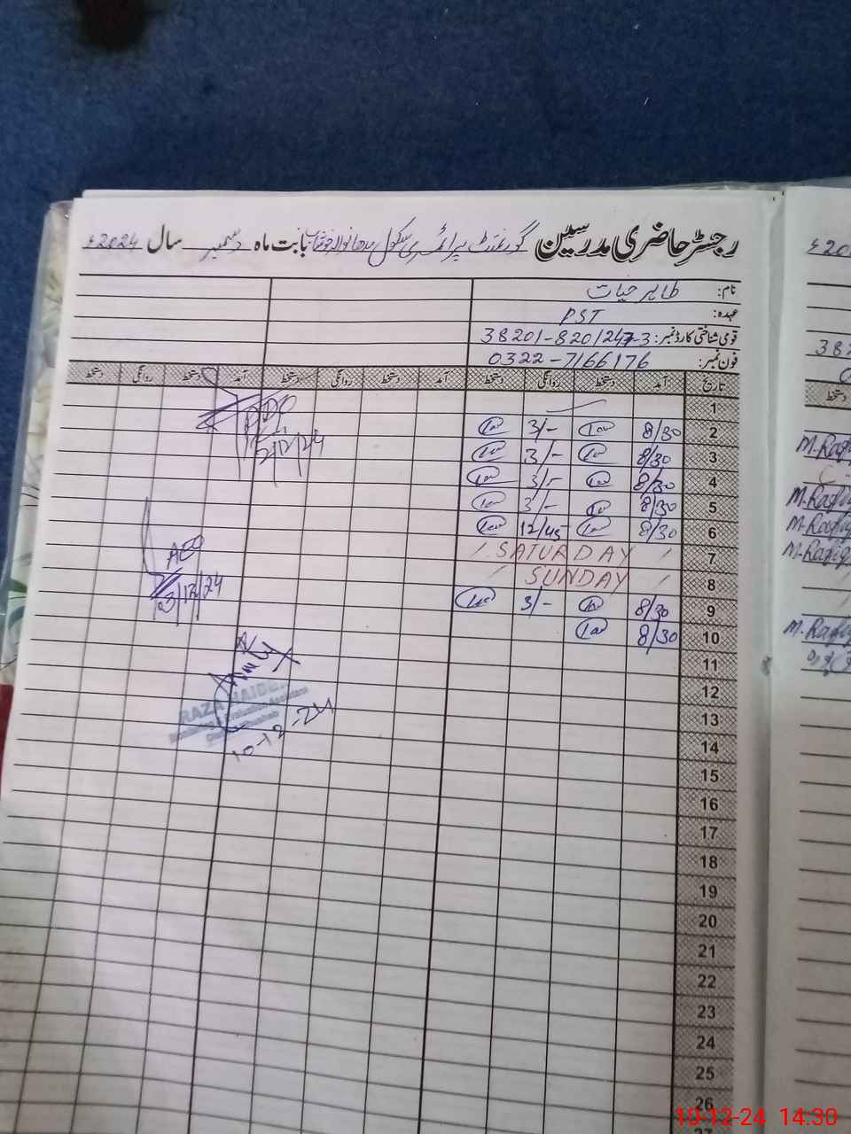 | Name: Ra**** Designation: (School Headmaster's/Headmistress's) PST Phone/Cell Number: 03**** |