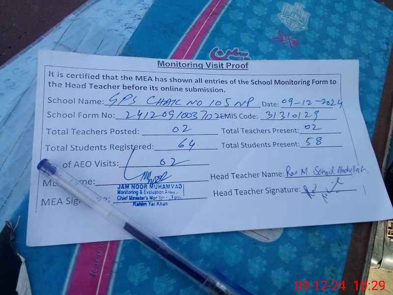 | EMIS Code: 31310129 | Name of School: GPS CHAK NO. 105/NP | |||