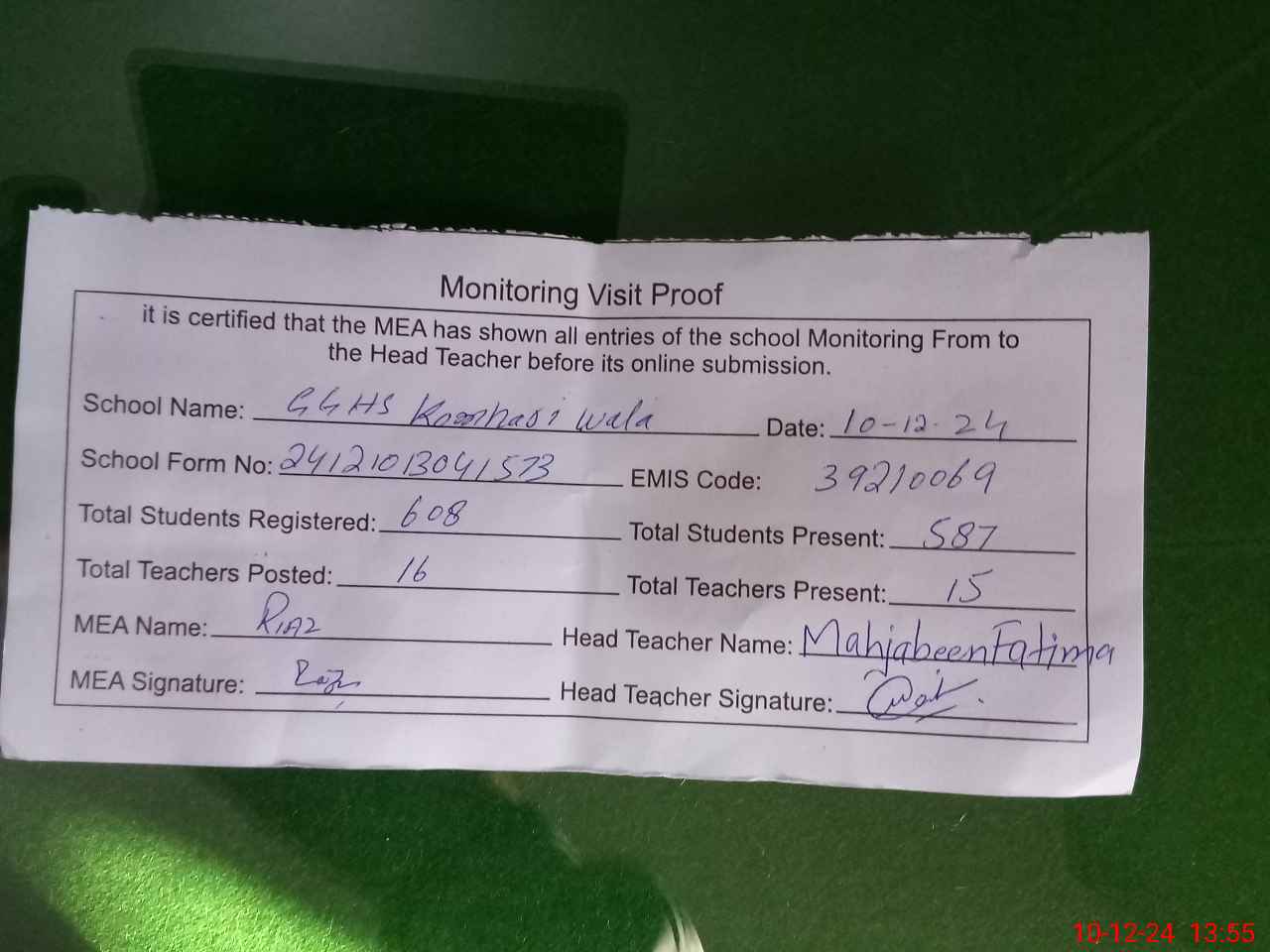 | EMIS Code: 39210069 | Name of School: GGHS KOMHARI WALA | |||