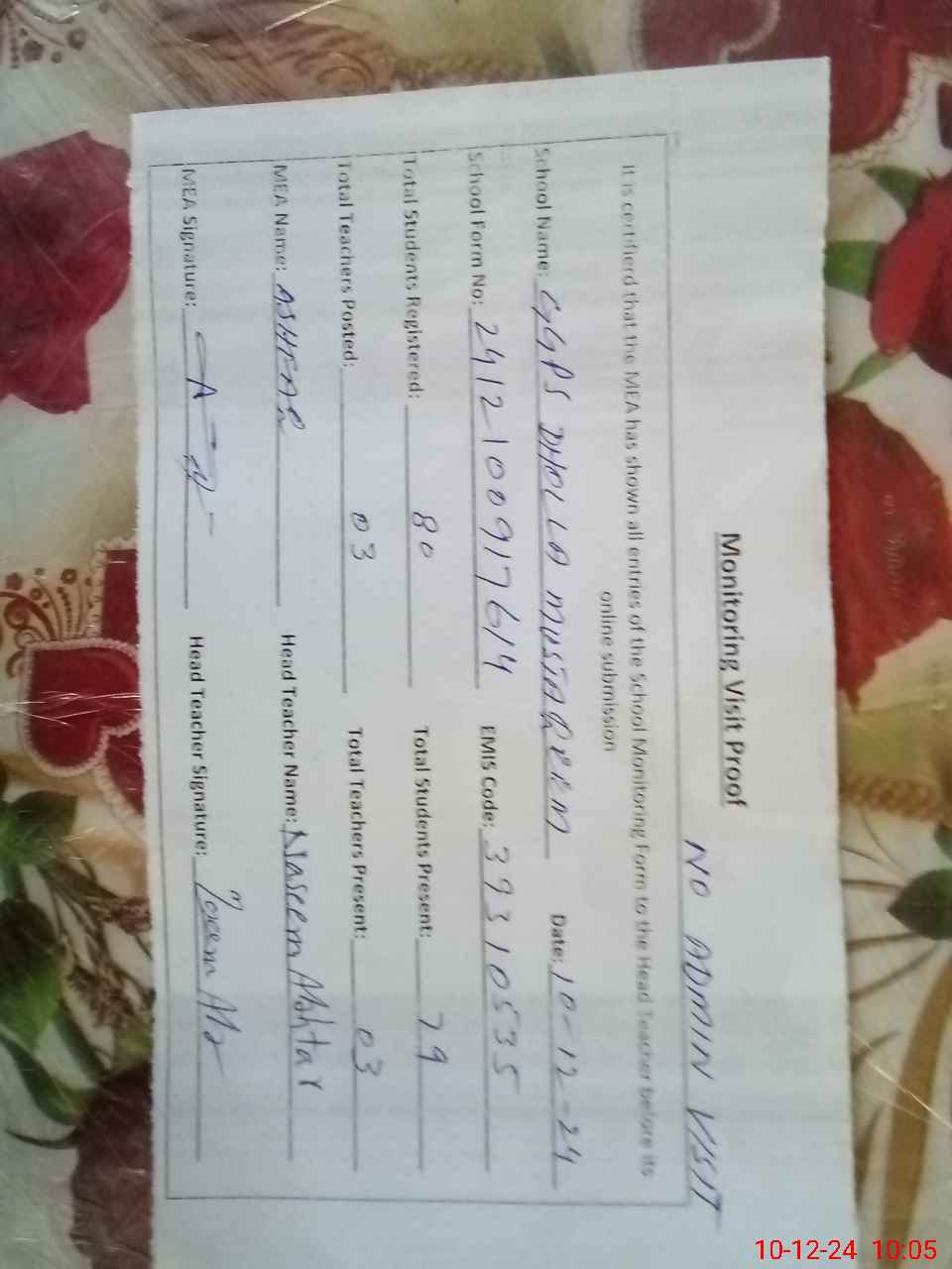 | EMIS Code: 39310535 | Name of School: GGPS DHOLLA MUSTAQEEM | |||
