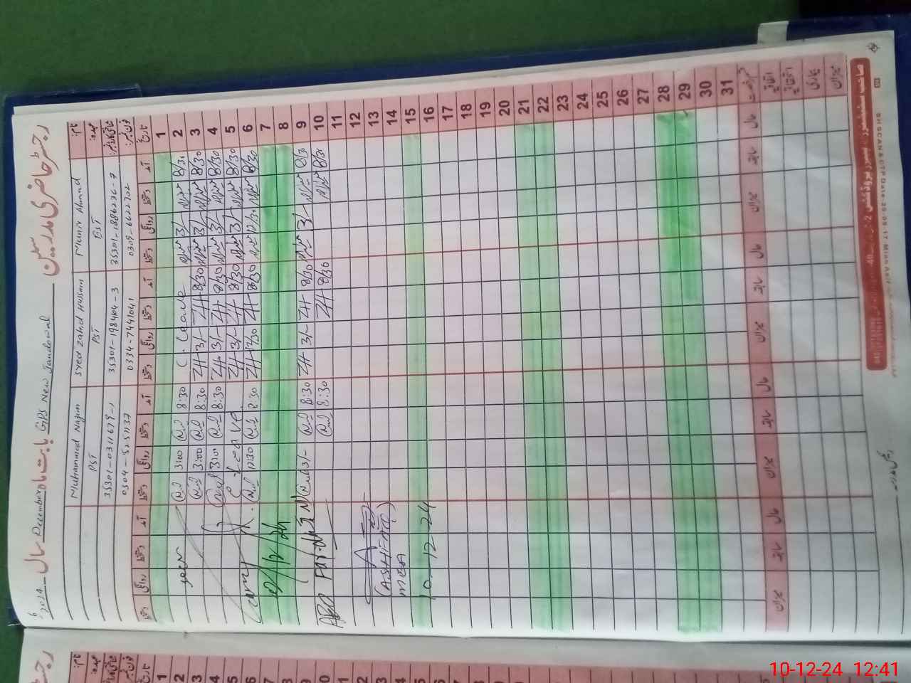 | CNIC | Full Name | Designation | R/C | Absence During Last Calender Month |