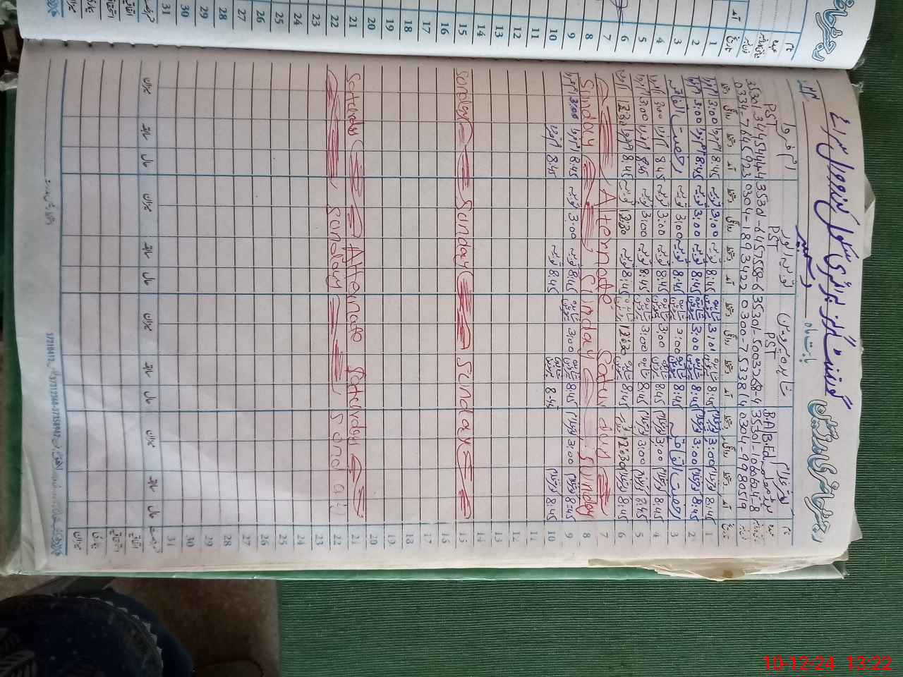 | CNIC | Full Name | Designation | R/C | Absence During Last Calender Month |