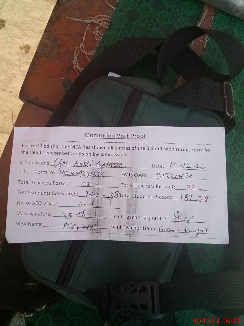 | EMIS Code: 31320630 | Name of School: GGPS BASTI GHASOORA | |||