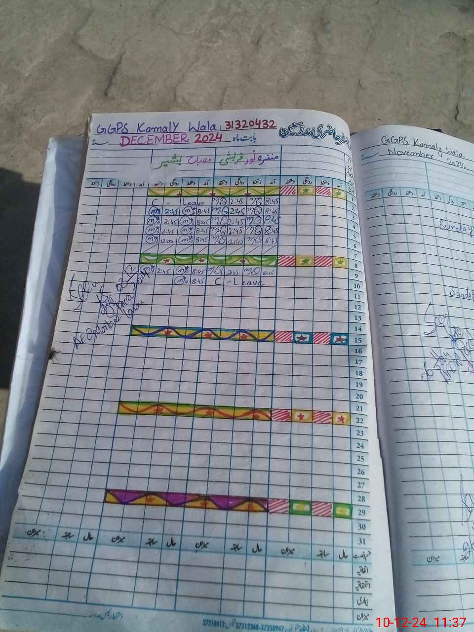 | CNIC | Full Name | Designation | R/C | Absence During Last Calender Month |