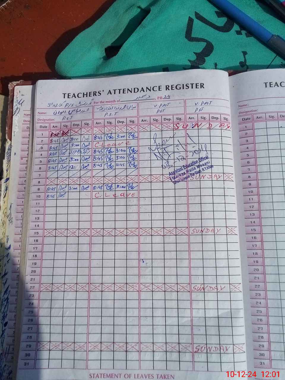 | Name: M.AB**** Designation: (School Headmaster's/Headmistress's) PST Phone/Cell Number: 03**** |