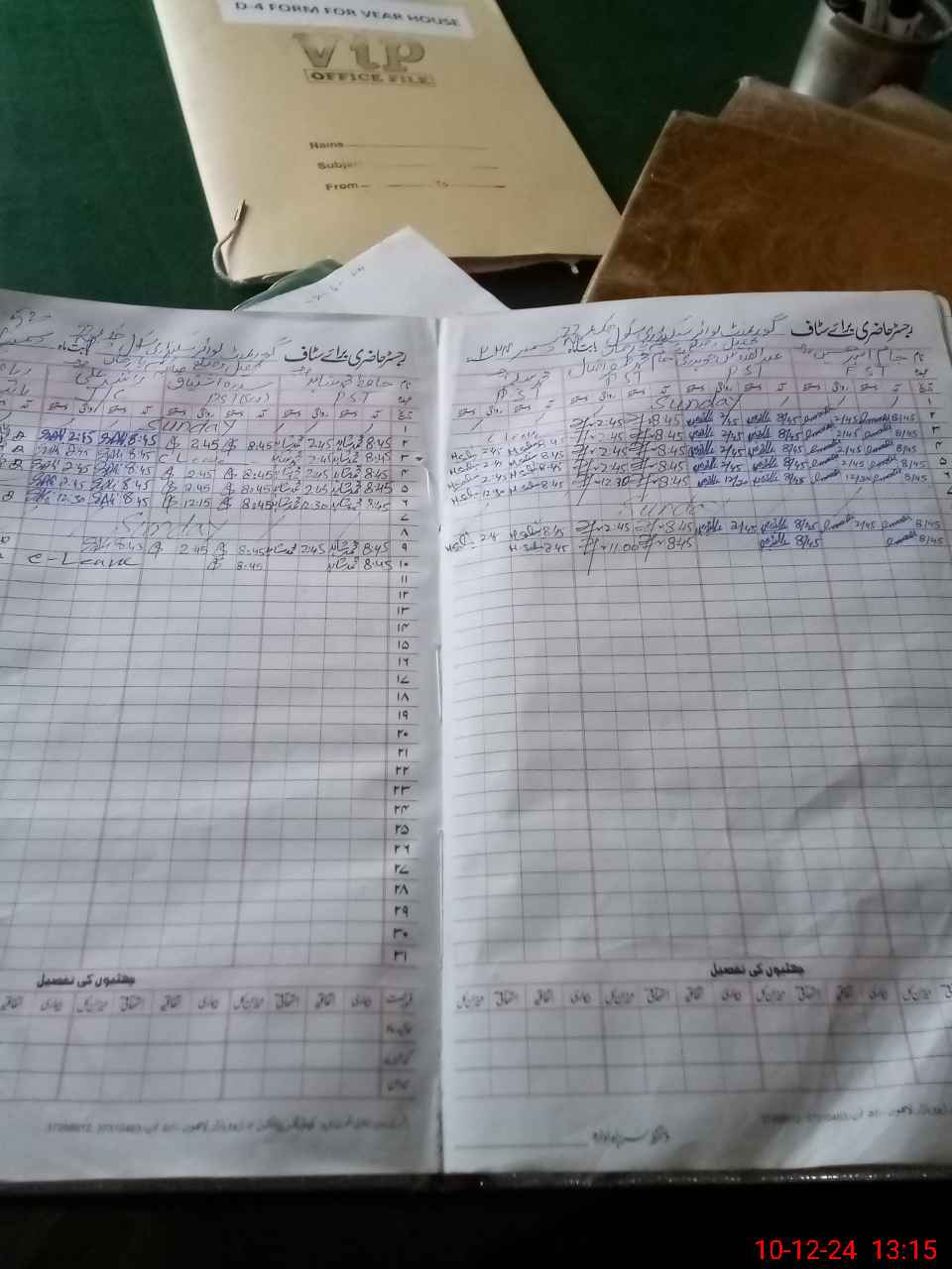 | CNIC | Full Name | Designation | R/C | Absence During Last Calender Month |