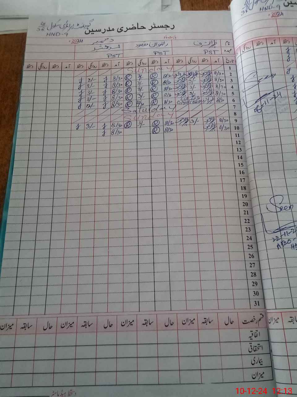 | CNIC | Full Name | Designation | R/C | Absence During Last Calender Month |