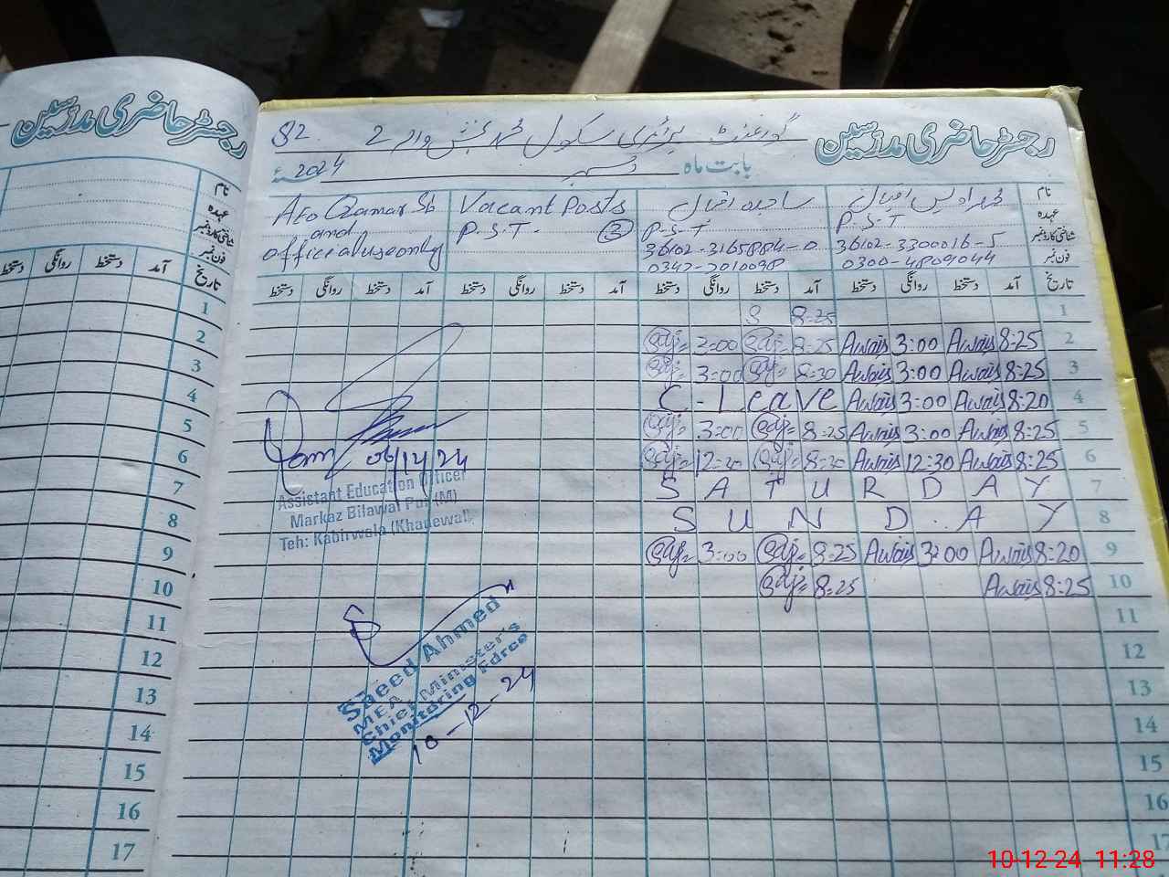 | Name: Mu**** Aw**** Iq**** Designation: (School Headmaster's/Headmistress's) PST Phone/Cell Number: 03**** |