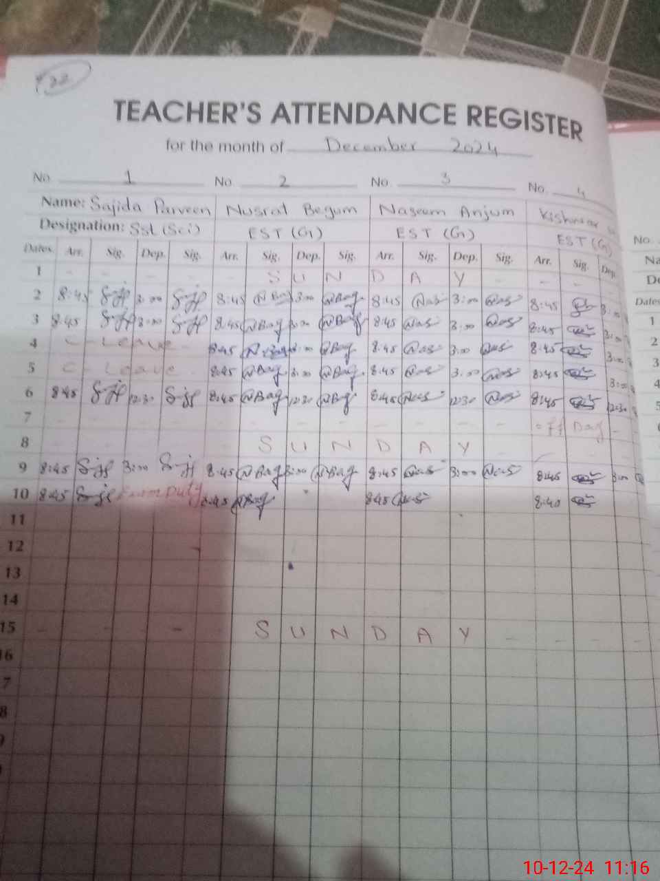 | 35**** | Sa**** Pe**** | SST | Regular | 0 | 0 | 0 | 0 | 0 | 0 | 0 | 0 | 0 | Exam Duty |