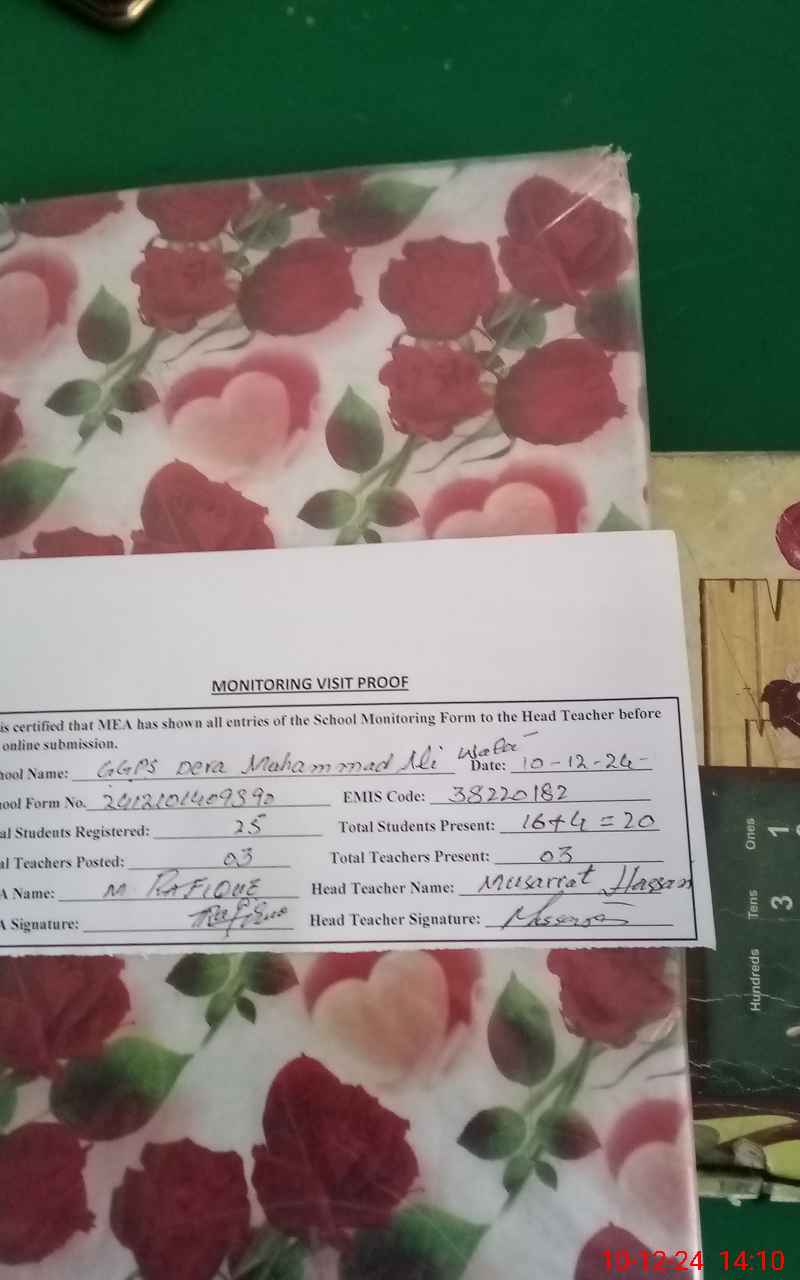 | EMIS Code: 38220182 | Name of School: GGPS DERA MUHAMMAD ALI WALA | |||