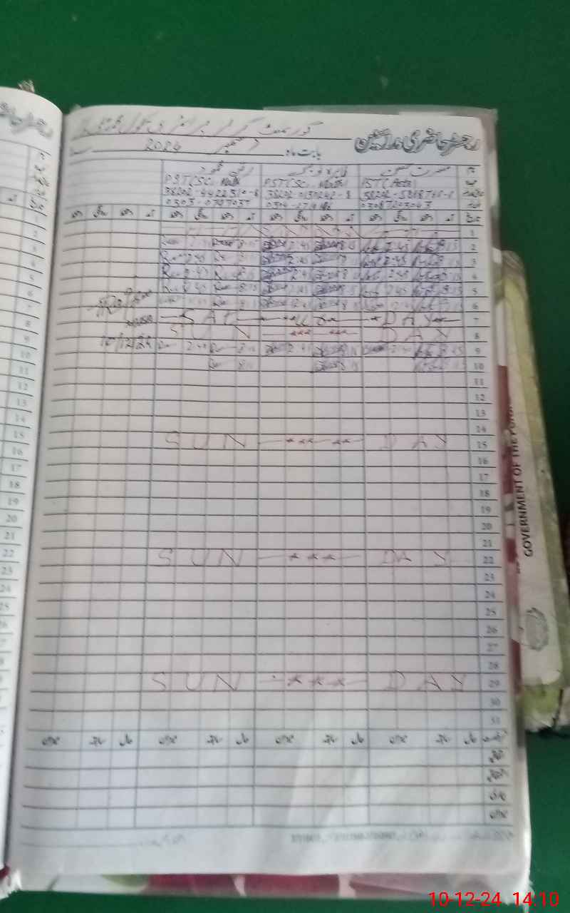 | CNIC | Full Name | Designation | R/C | Absence During Last Calender Month |