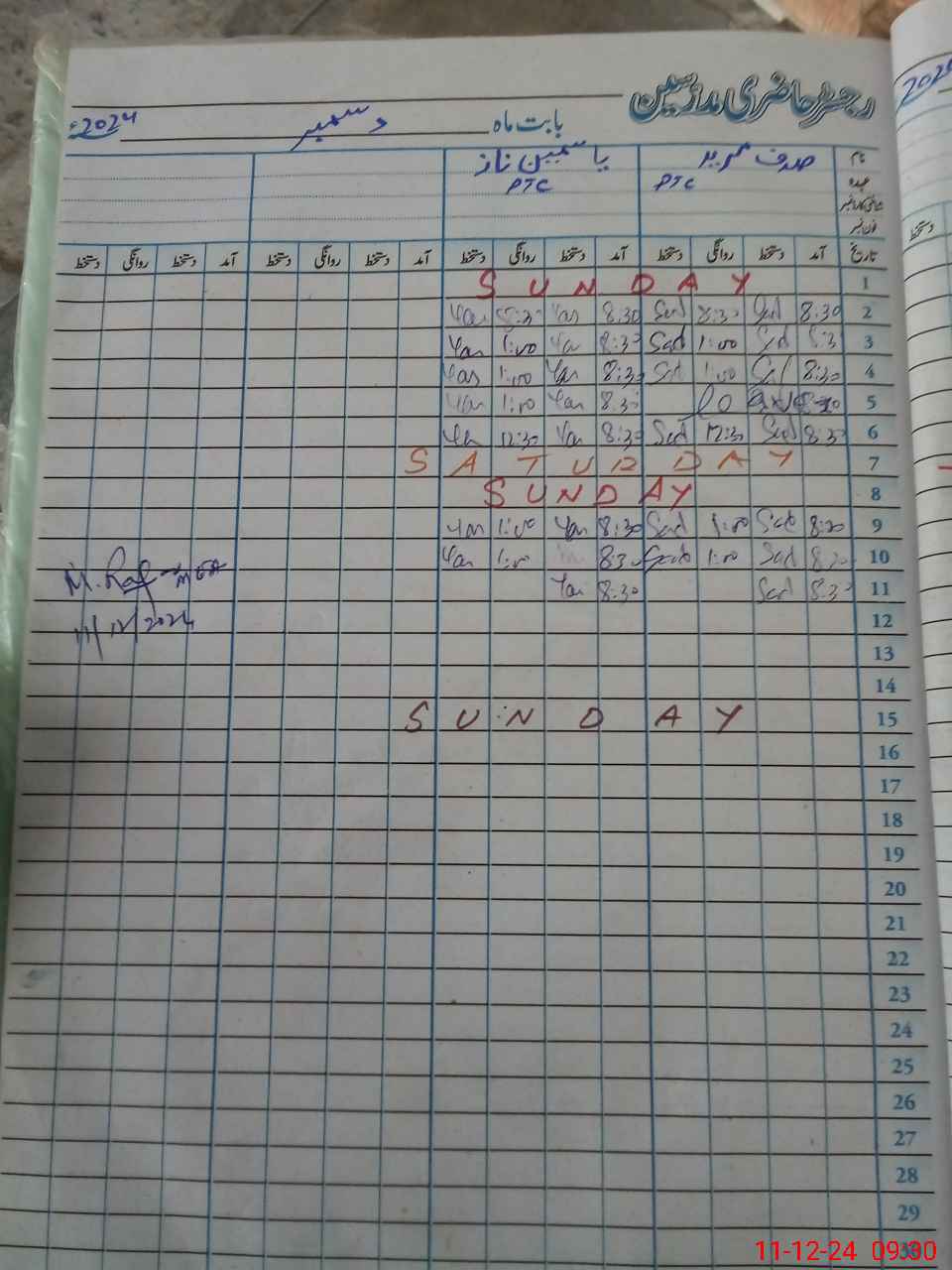 | CNIC | Full Name | Designation | R/C | Absence During Last Calender Month |