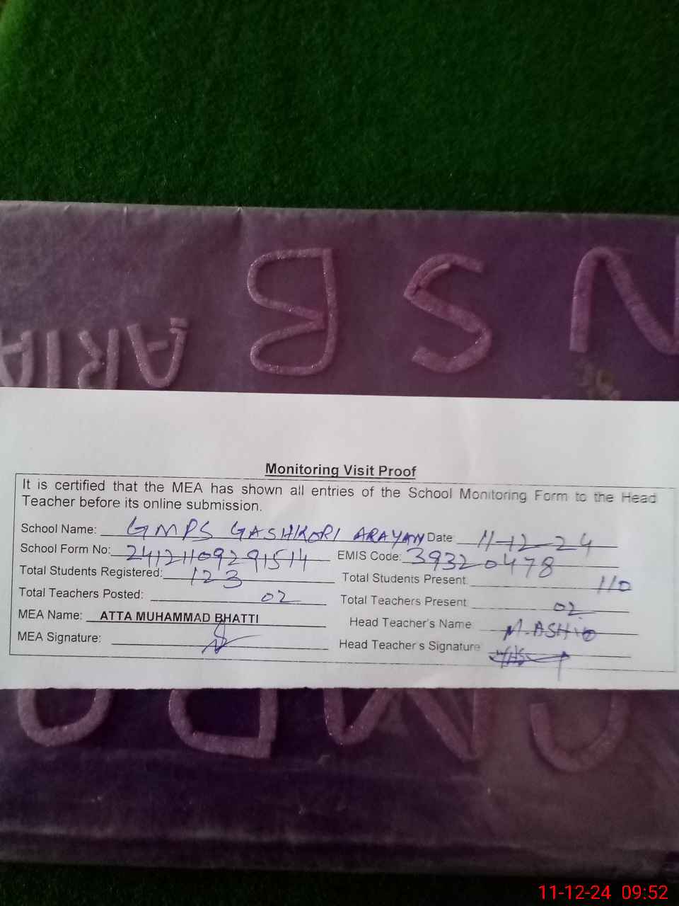 | EMIS Code: 39320478 | Name of School: GMPS GASHKORI ARAIAN | |||
