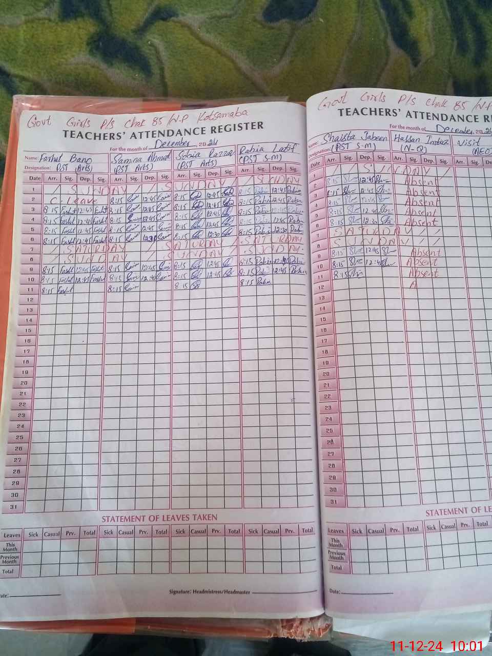 | 31**** | Ha**** Im**** | NAIB QASID | Regular | 0 | 0 | 10 | 0 | 0 | 0 | 0 | 0 | 0 | Absent (Un-Authorized) |