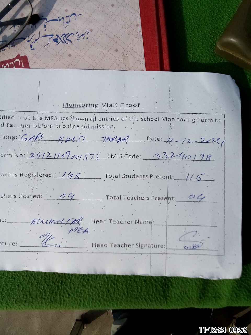 | EMIS Code: 33240198 | Name of School: GMPS BASTI TARAR | |||
