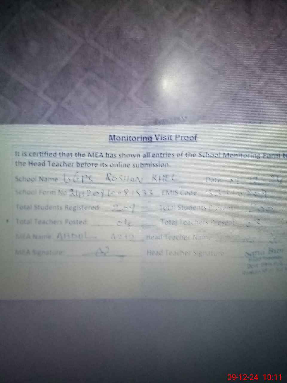 | EMIS Code: 38310209 | Name of School: GGPS ROSHAN KHEL | |||