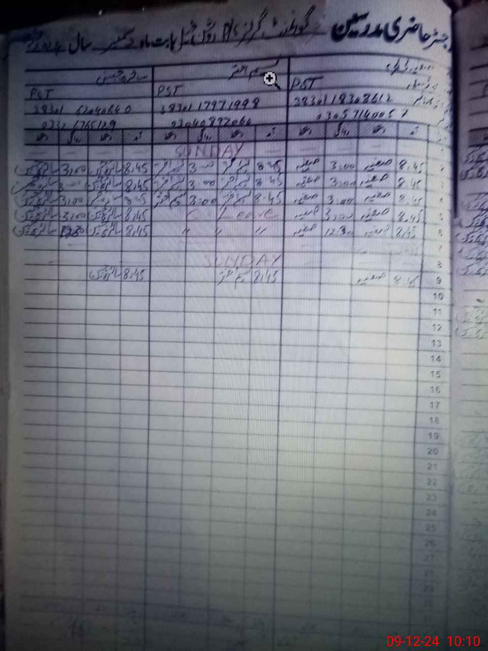 | Name: SA**** BI**** Designation: (School Headmaster's/Headmistress's) PST Phone/Cell Number: 03**** |