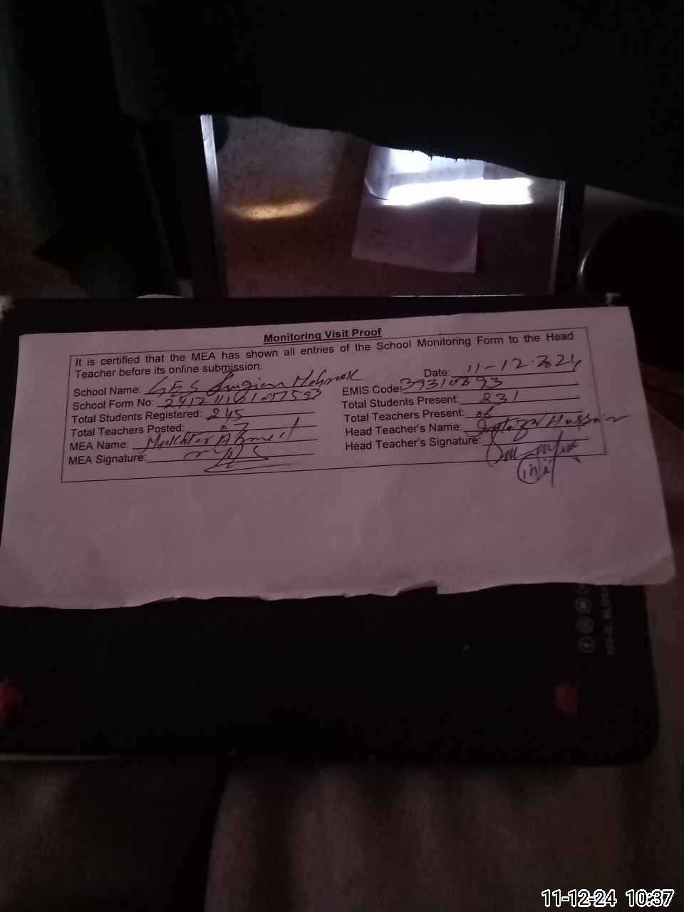 | EMIS Code: 39310093 | Name of School: GES JHUGHIAN MAROOK | |||