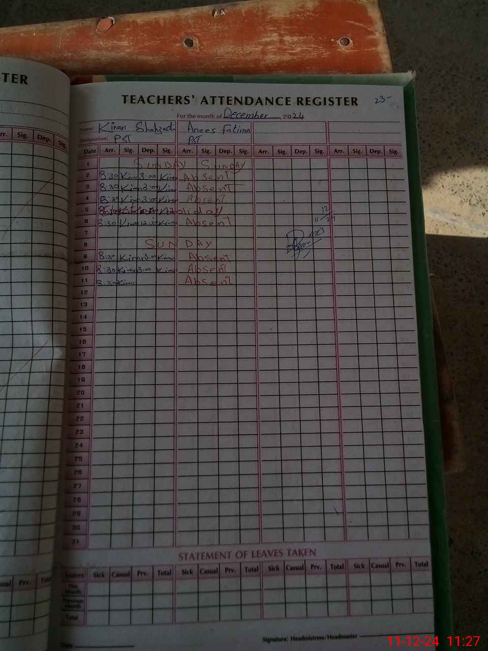 | 35**** | An**** Fa**** | PST | Regular | 0 | 0 | 30 | 0 | 0 | 0 | 0 | 0 | 0 | Absent (Un-Authorized) |