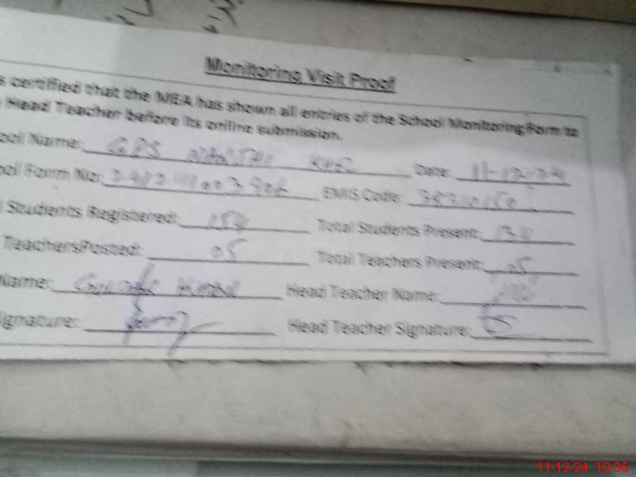 | Monitoring Date: 11-12-2024 | Start Time: 11-12-2024 10:03 AM | End Time: 11-12-2024 10:37 AM | Name of MEA: Gu**** Hu**** Kh**** | |