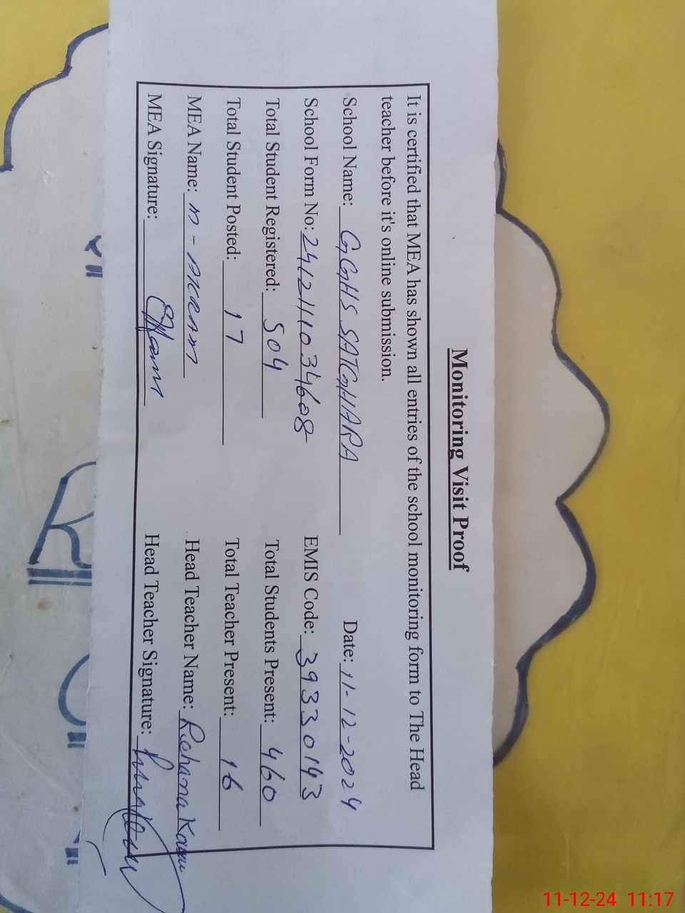 | EMIS Code: 39330143 | Name of School: GGHS SATGHARA | |||