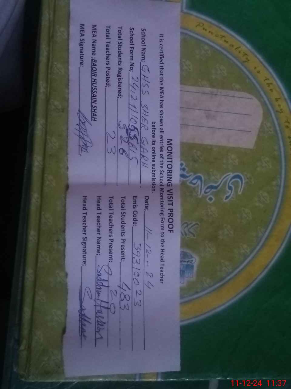 | EMIS Code: 39310023 | Name of School: GHSS SHER GARH | |||
