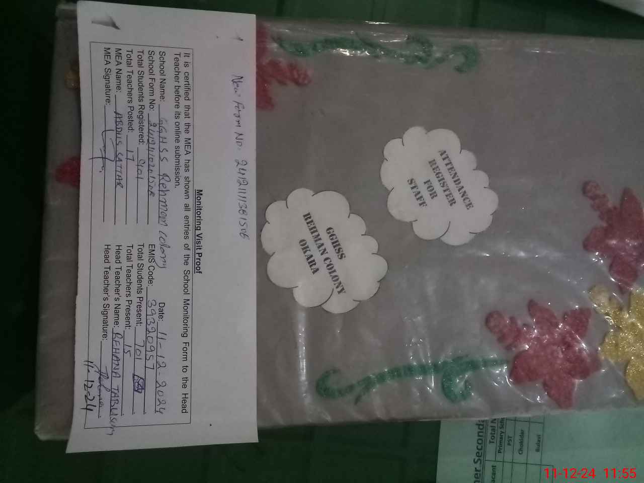 | EMIS Code: 39320957 | Name of School: GGHSS REHMAN COLONY OKARA | |||