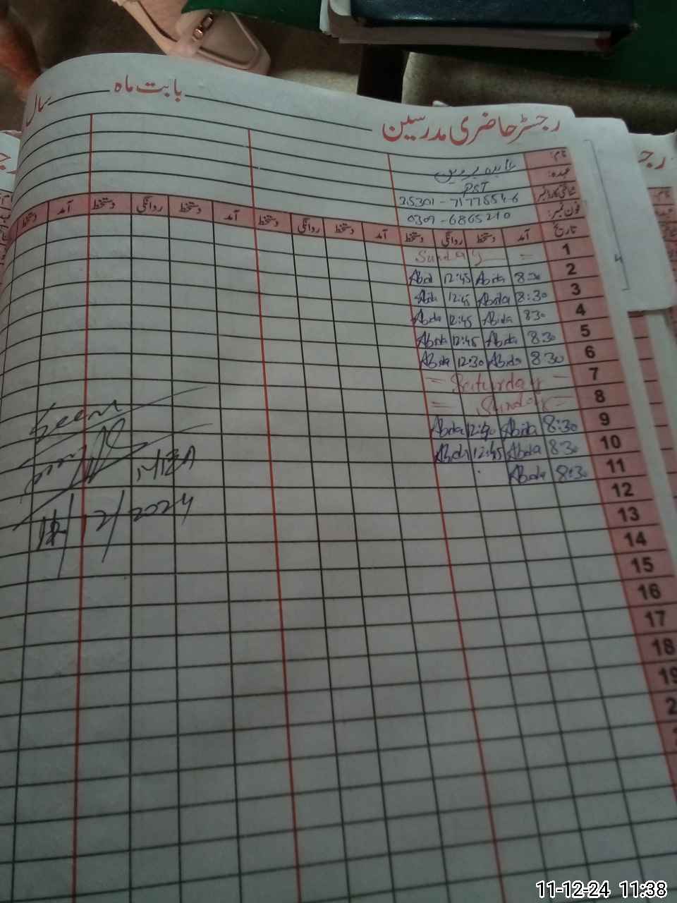 | CNIC | Full Name | Designation | R/C | Absence During Last Calender Month |
