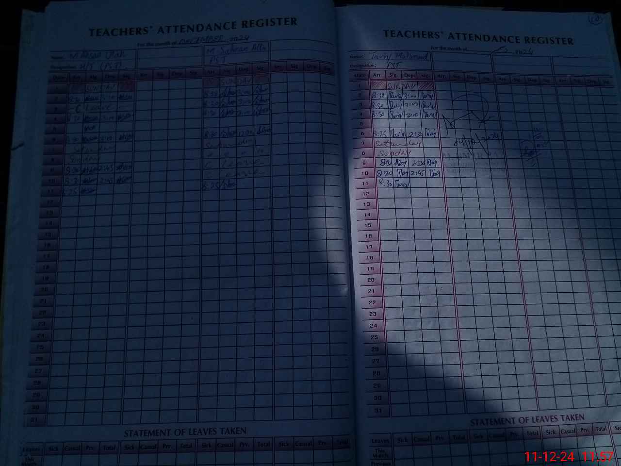 | CNIC | Full Name | Designation | R/C | Absence During Last Calender Month |